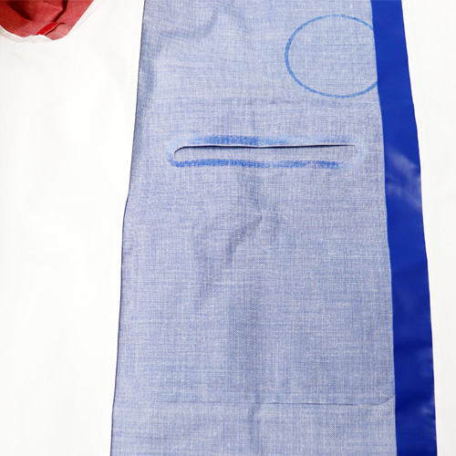 着用後は、汚れを水で洗い流し、汚れのひどい部分はスポンジ等の柔らかい布に薄めた中性洗剤を染み込ませて軽くたたく様に汚れを落として下さい。