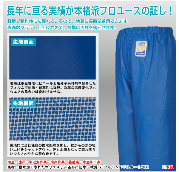 ◆水産加工・漁業用に作られたプロ仕様の合羽