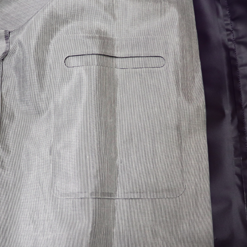 フロント部分は大型のスライドファスナーとマジック仕様で手袋をしたままでも開閉しやすい。